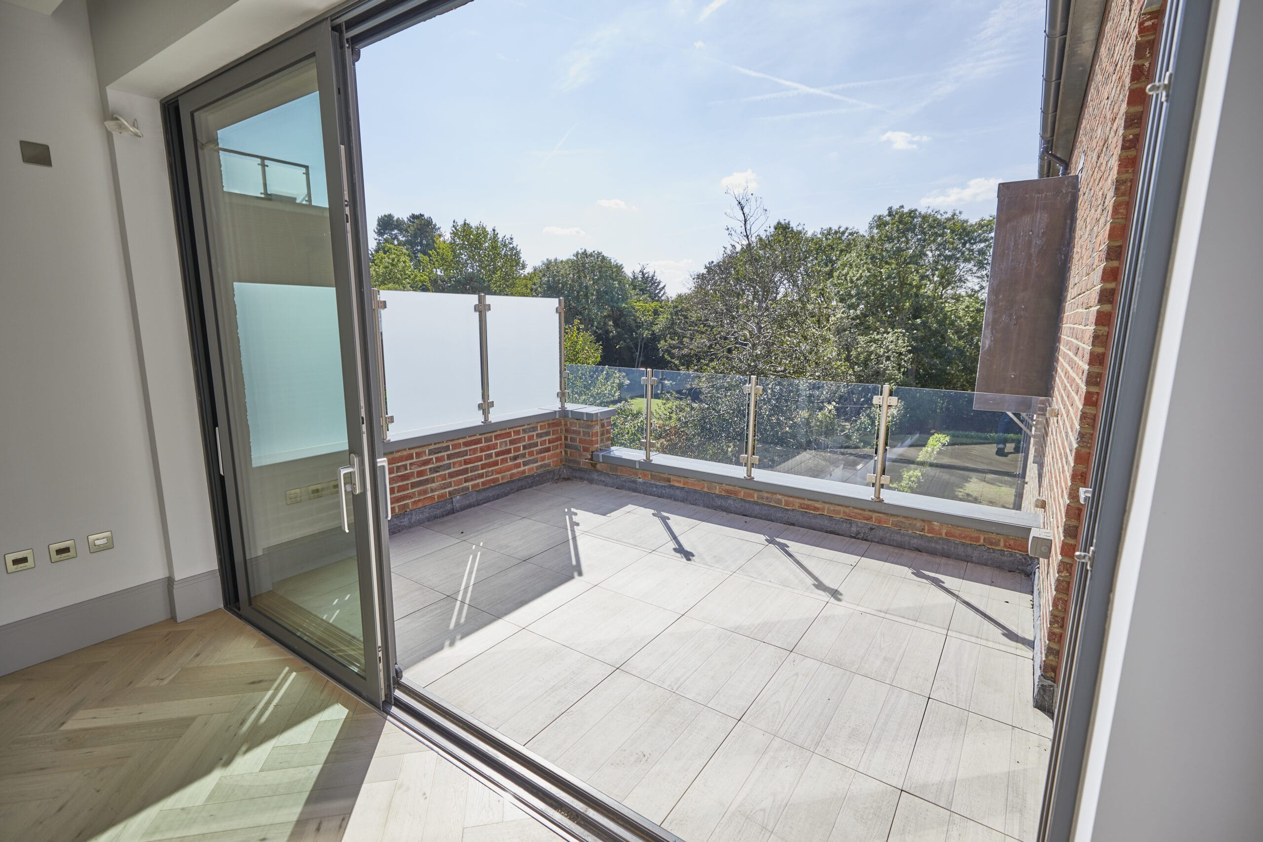 The range of terraces are designed to provide each flat with a unique and private outdoor space overlooking the gardens. The terraces have been styled in a clean and contemporary way, with a focus on raising the theatrical views of the communal gardens below. Many a summer’s evening can be spent gazing across the estate’s grounds and into the countryside beyond.